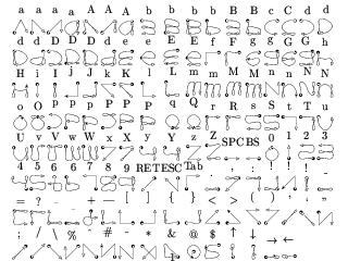 alphabet also includes many strokes shaped like lowercase letters, (b,